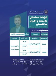 کد دوره: ۱۳۲۷۸ نام استاد: آقای مهندس مهدی خاکپور تاریخ شروع: ۱۴۰۴/۰۵/۲۴ تاریخ آزمون(حضوری): ۱۴۰۴/۰۶/۰۴