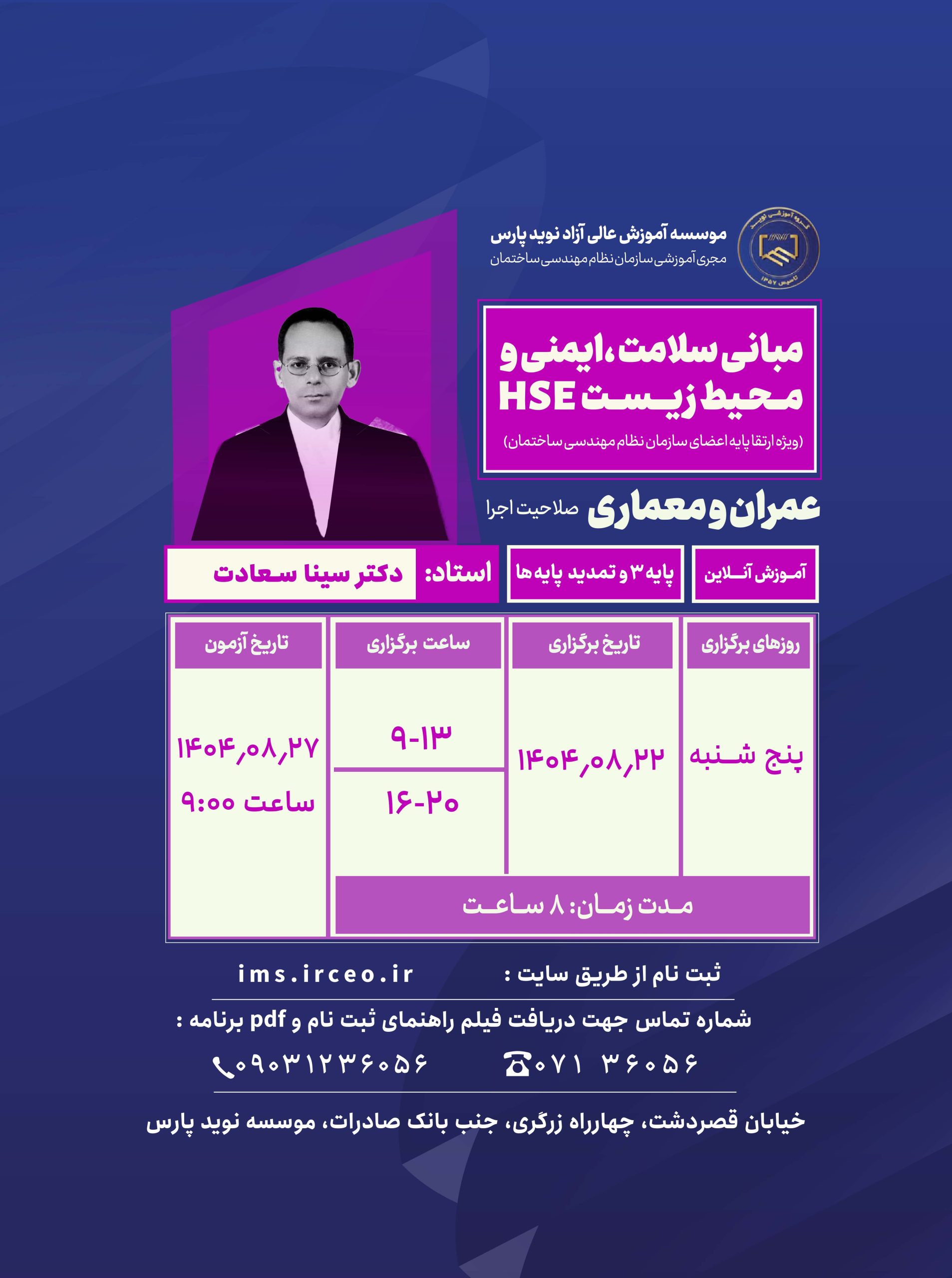 مبانی سلامت ، ایمنی و محیط زیست HSE (عمران و معماری – اجرا – اخذ پایه ۳ و تمدید )